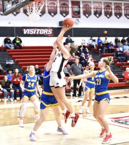Martensdale-St. Mary’s was led by 14 points from Rylie Fugate and eight points from Carley Franey and Kathryn Ballard.
