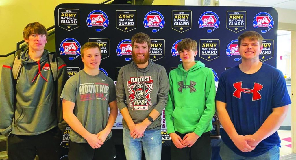 The Mount Ayr e-sports team who competed at state competition includes (L-R) Rolland Adkisson, Trace Knapp, coach Isaac Vos, Calvin Main, and Rylan Larsen.